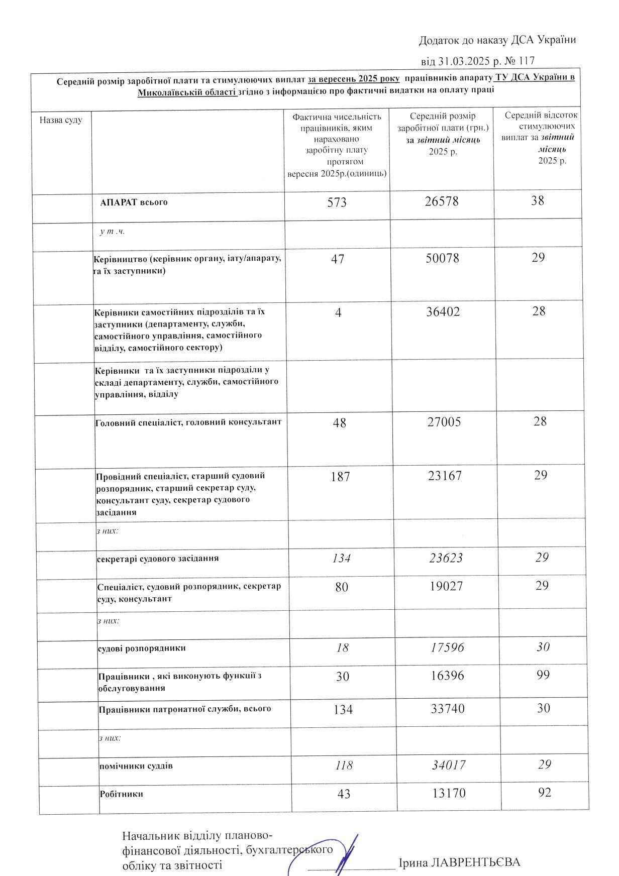 Інформація про середній розмір заробітної плати працівників апаратів місцевих загальних судів Миколаївської області
