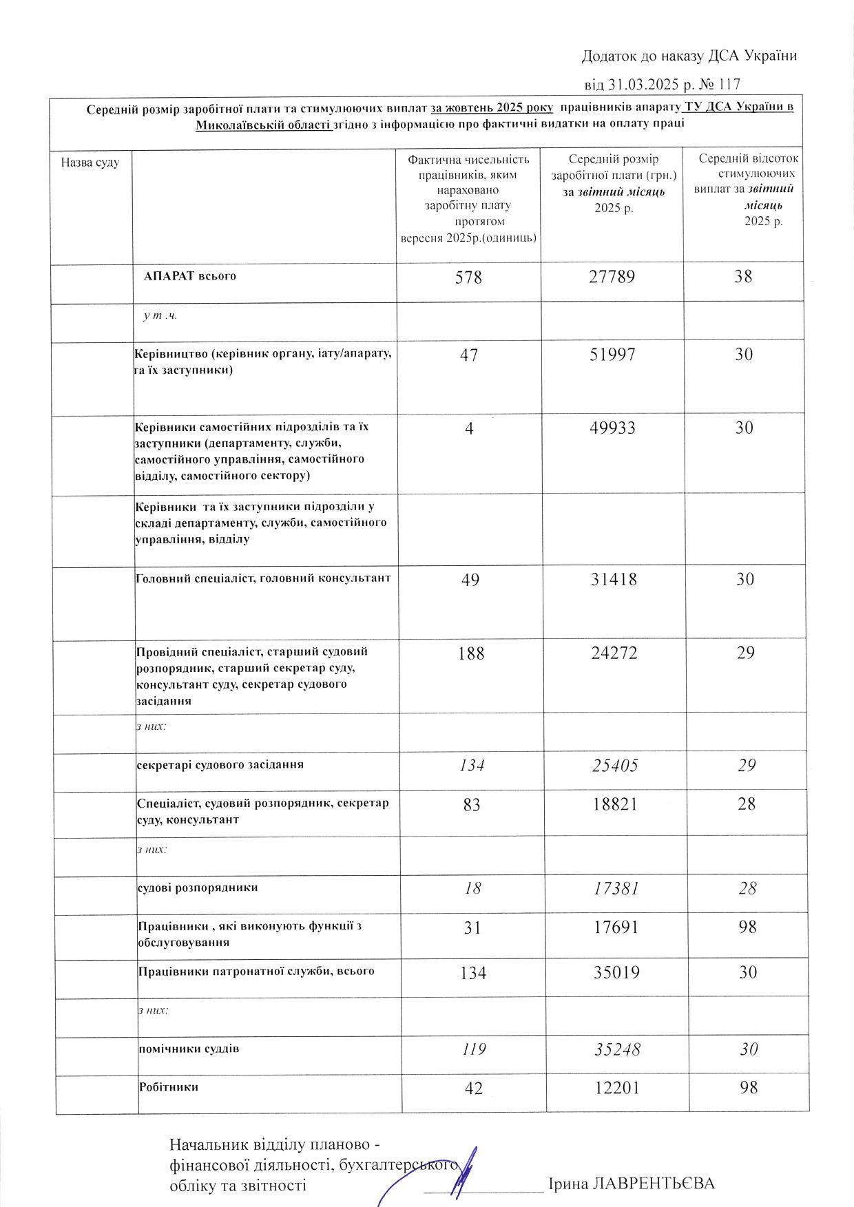 Інформація про середній розмір заробітної плати працівників апаратів місцевих загальних судів Миколаївської області